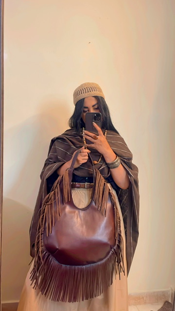 کیف زنانه مدل کومه چرم طبیعی گاوی دستدوز