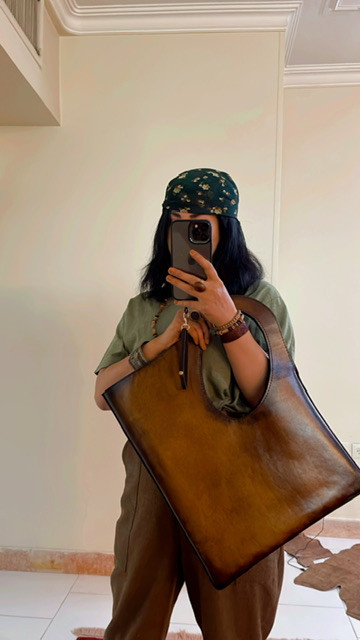 کیف زنانه مدل گوش فیل با چرم طبیعی گاوی درجه یک اجرا شده