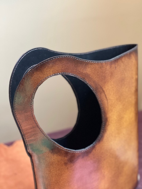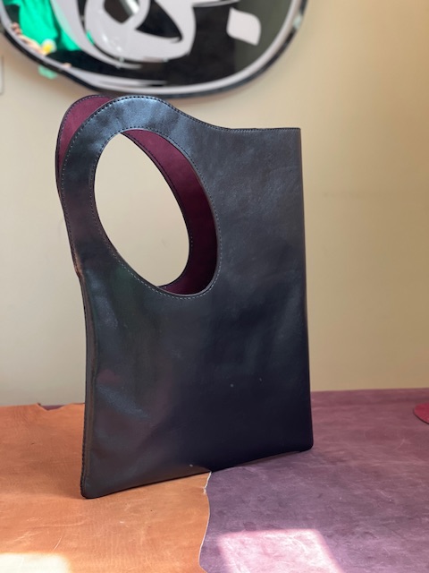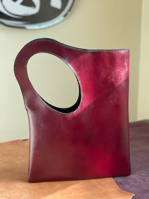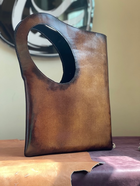 کیف زنانه مدل گوش فیل با چرم طبیعی گاوی درجه یک اجرا شده