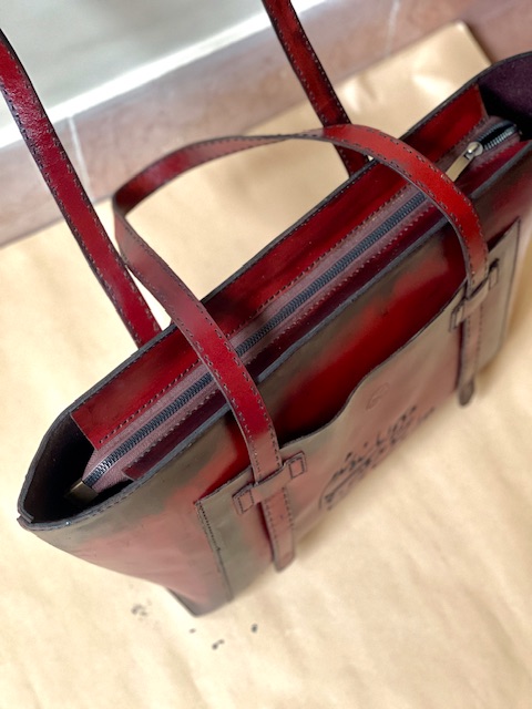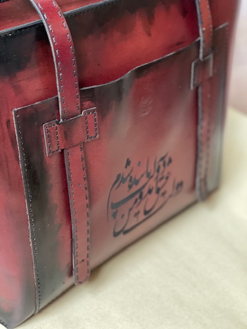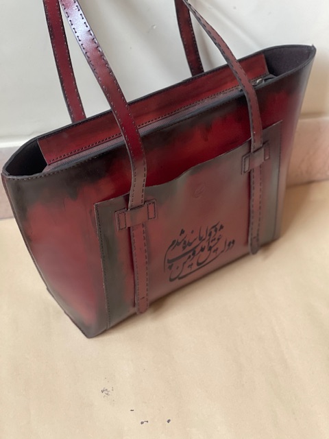 این کیف با چرم طبیعی گاوی بصورت دستدوز اجرا شده